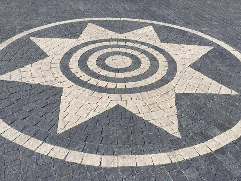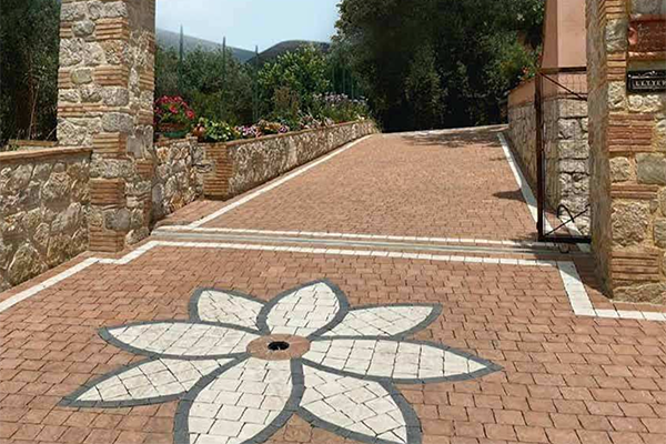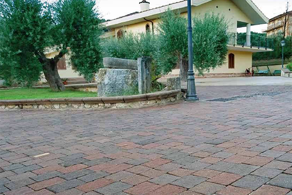 Pavimento Autobloccante composto da masselli in cemento dello spessore di cm. 6 e cinque diversi formati assortiti, molto simili alle pietre naturali come ad esempio il sampietrino.